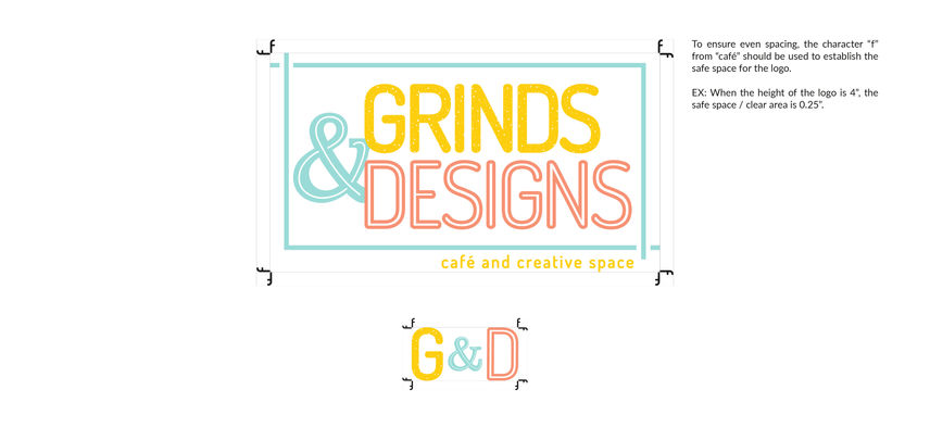 Looking to the elements of design that we are taught in school, the branding of the cafe is inspired by an atmosphere of fresh colors, geometric forms, line, space, and texture. Grinds & Designs is a place where designers and regulars alike can sit down and have a space to work the is not overwhelming and hectic as the outside world.